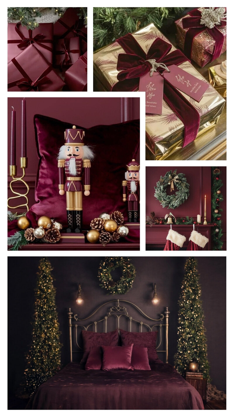 The color palette will be burgundy and gold. We will have three sets in which to photograph your family. The first will be a gorgeous burgundy painted canvas for formal portraits, the second will be a burgundy wall with Christmas trees and decorations. The third set will be the more whimsical ever-popular bedroom scene for the kids! Remember to bring a set of PJs for the bedroom scene!